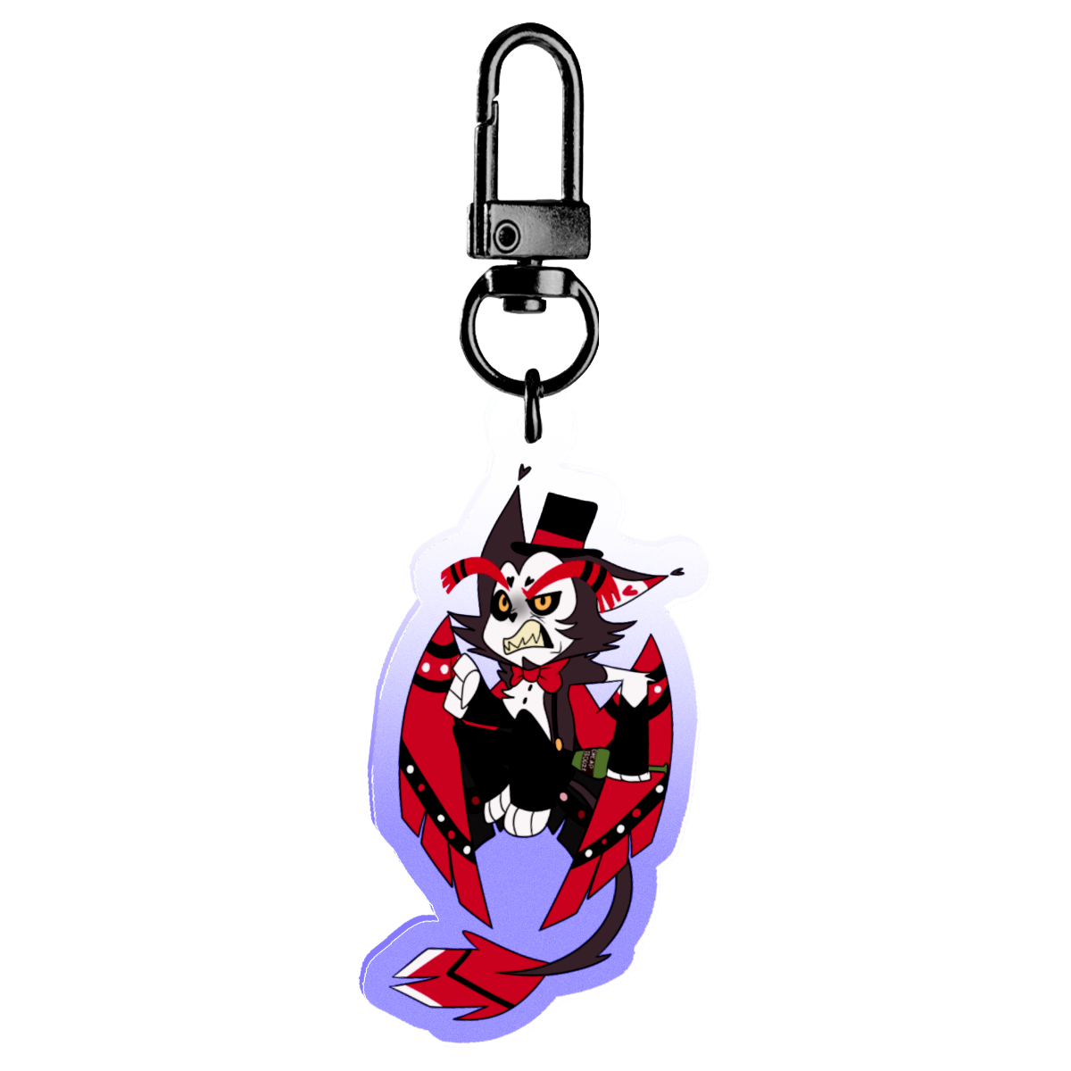 A colored edge acrylic charm featuring Husk from Hazbin Hotel!