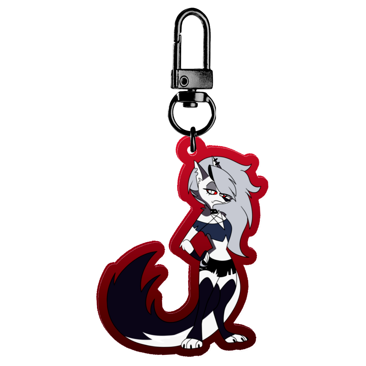 A colored edge acrylic charm featuring Loona from Helluva Boss!