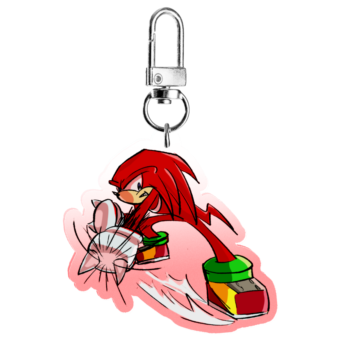 A colored edge acrylic charm featuring Kunckles from Sonic the Hedgehog!