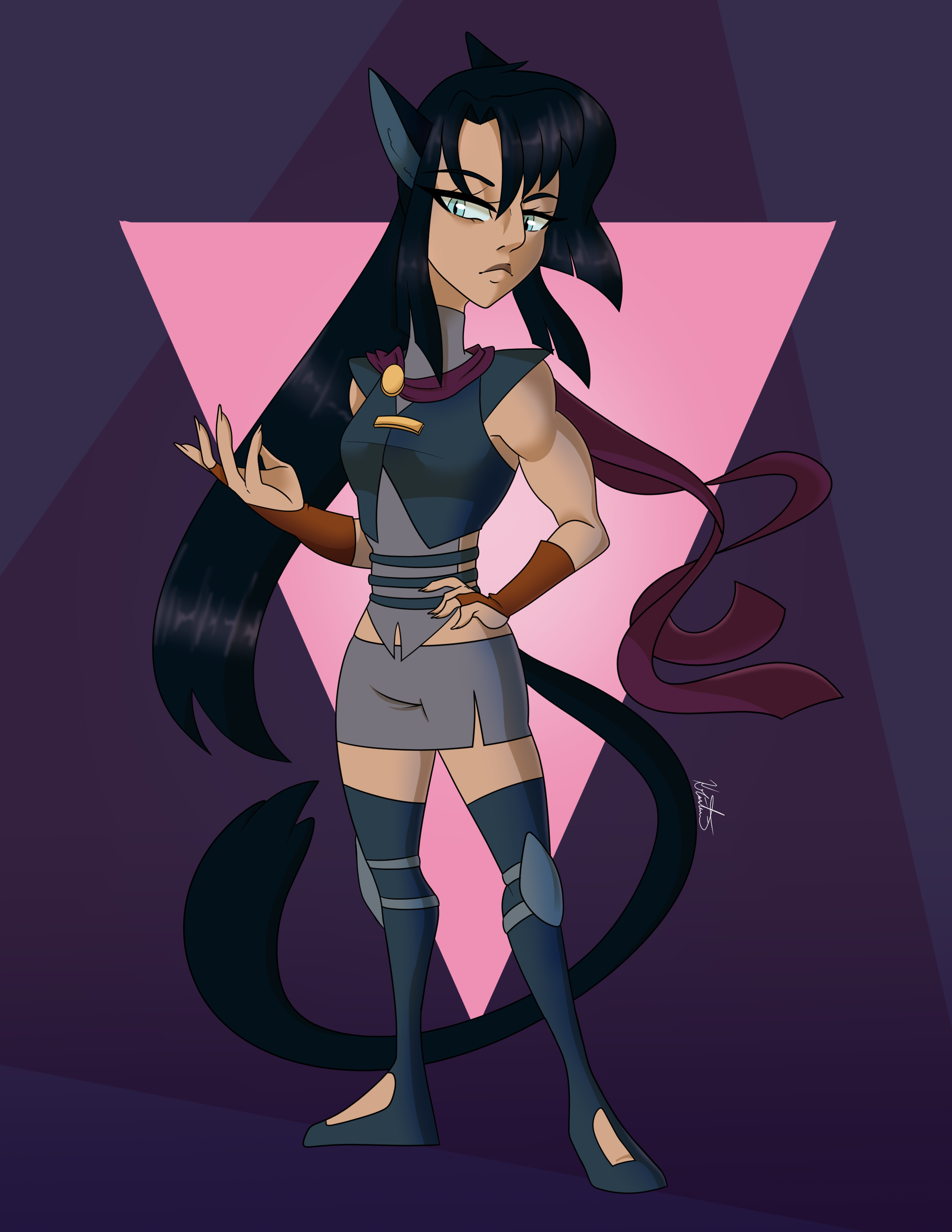 An original character from a Dungeons and Dragons campaign. Her name is Luna, she is a half-tabaxi rogue assassin, drawn by me!